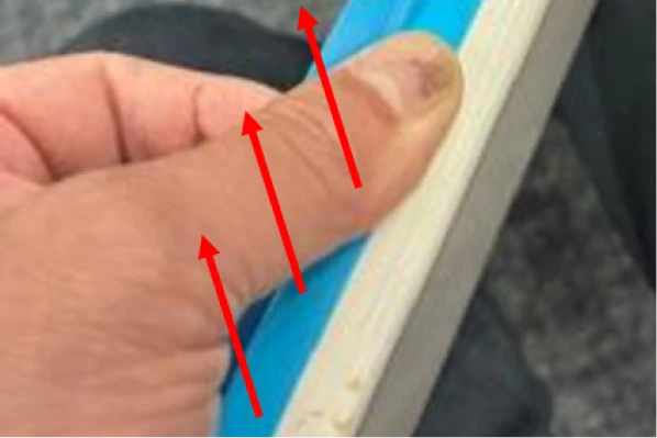 すぐに修理依頼を行わない場合や修理まで日数がかかる場合は、扉シートが隣の扉に接触し、折れ目がついたり、開閉しづらくなる可能性があります。扉シートの剥がれを広げないためにも、下記手順に従って応急処置をしてください。
