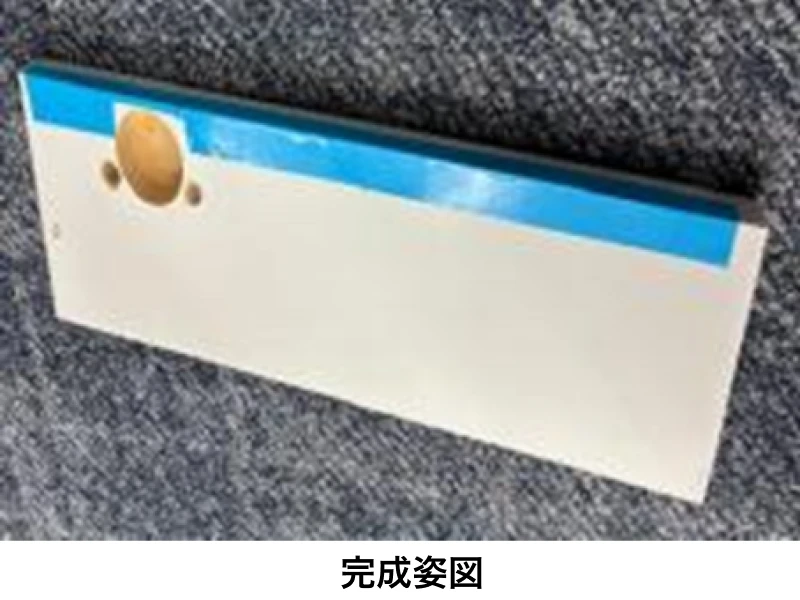 5 接着剤はヘラで平らにして両面テープ剥離シートとマスキングテープをはがし、5分程度放置します。