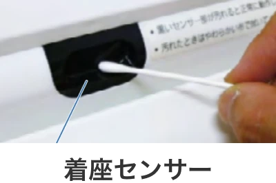 着座センサー部をふき掃除してください。