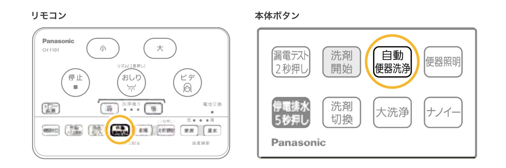 「自動便ふた開」はリモコン・本体どちらかにボタンがあります。