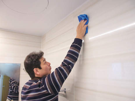 壁の水滴も軽く拭いてから「カビシャット」スイッチを押しておけば、翌朝にはホントにカラッと気持ちいいくらい乾いていますよ。
