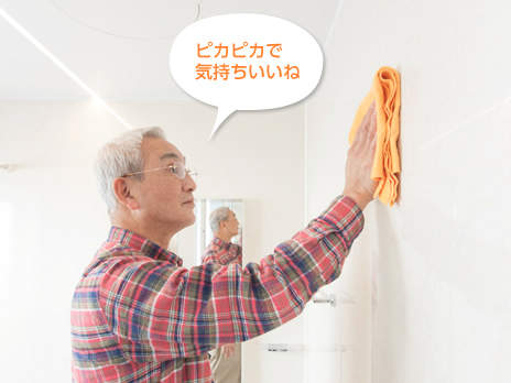 壁も床も雑巾でささっと拭いて、最後は暖房換気乾燥機におまかせ。いつもピカピカで気持ちいいですね。