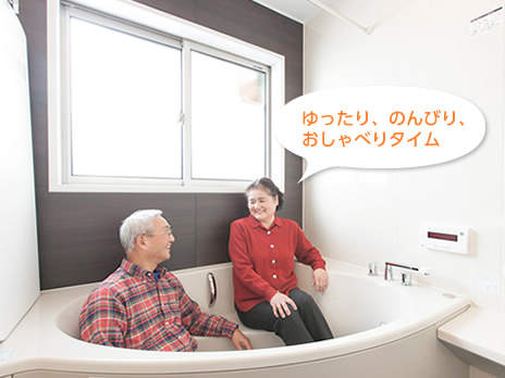 今は背の高い私も足を伸ばせて、傍らで妻が半身浴できる広さ。一緒に入って一緒に出るので時間にムダがなく会話も弾みます。