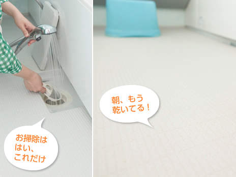 それに、床の水はけがよくて朝にはカラリと乾いているんです。水アカが気にならないので掃除がラクで助かりますね。