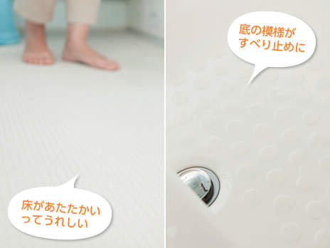 リフォムスは床があたたかく、すべりにくいところがいいですね。浴槽につかっているときもすべり止めのおかげで、身体が安定するんですよ。