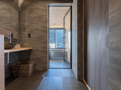 これにより洗面室と浴室に連続性が生まれ、より広さを感じると同時に、養老渓谷の景観が洗面室からも楽しめるようになりました。