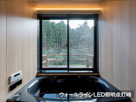 ウォールラインLED照明の間接光もバスルームの雰囲気をよりゴージャスにしており、部屋風呂を希望される海外のお客様には特に喜んでいただいていると思います。