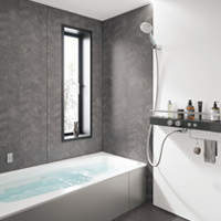 スタイリッシュでお掃除しやすい設備がそろったBEVAS。家族みんなが納得できるお風呂になりました。