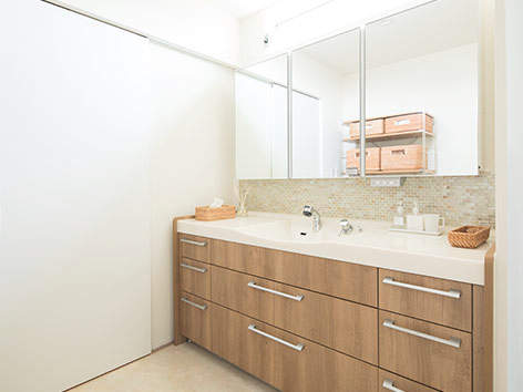 一覧に戻る家づくりを考えていた時、ショウルームでオーク柄の扉を