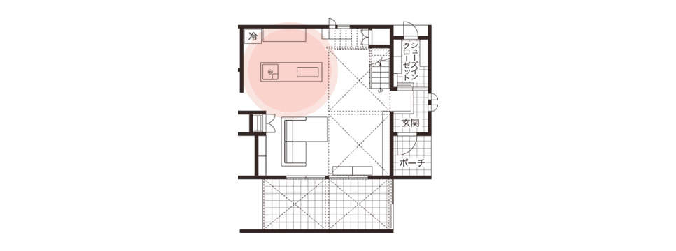 また「いろりダイニング」にしてテーブルの上は常にすっきり。「以前は、郵便物や絵本などをダイニングテーブルの上に置きっぱなしで、食事の際に都度、片付けていました。今はダイニングテーブルで料理もするから、モノを置かない習慣がついて、いつもきれいで気持ちがいいんです」。片付けの手間まで省力化できるという嬉しいおまけもあったとお喜びです。