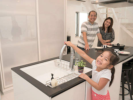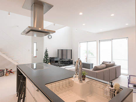 これまでキッチンに入ることはほとんどなかったというご主人も、後片付けを積極的にされるようになったそうです。実は「いろりダイニング」を採用したいと最初に言い始めたのは、ご主人でした。「ショウルームもカタログもいろいろチェックしたけれど、こんなキッチンは見たことがなかった。デザインをひと目で気に入りました。沖縄で採用第1号と聞いてそれも嬉しかった」と笑顔で語ります。