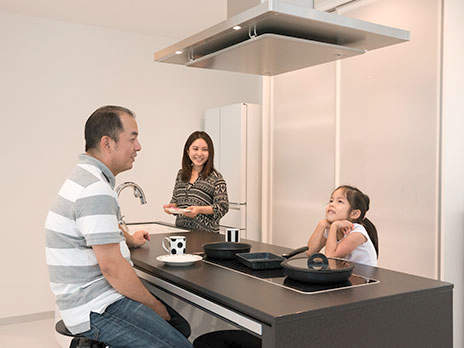 「料理も食事もほとんど動かず、その場でできるから、ずいぶん家事がラク。食事中もずっと一緒に話していられます」と奥さま。