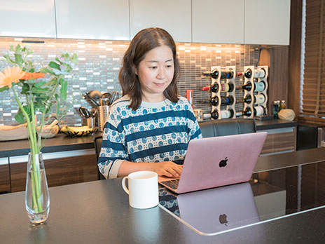 「IHはお掃除もラクでいい」と奥さま。ちょっとしたパソコンの作業などは、いつもここに座って。
