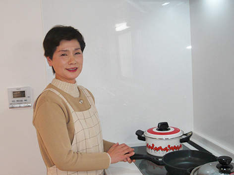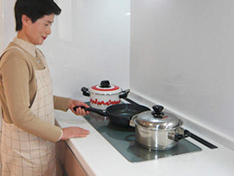 築20年過ぎたわが家の水廻り一式をリフォームされたEさま。テキパキお料理できるトリプルワイドIHは奥様のいちばんお気に入り。3口フル活用されています。