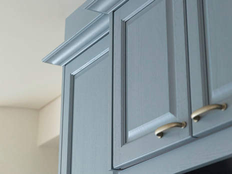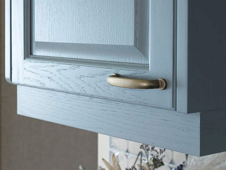 外国風のキッチンに欠かせない装飾として、扉上部に“飾り縁”を、扉下部には“幕板”をプラス。クラシカルな雰囲気を演出します。