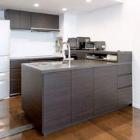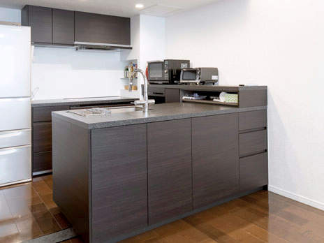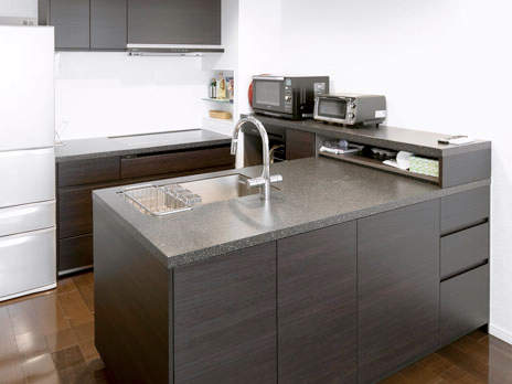 中古マンションを購入し、キッチンをリフォームされたMさま。リフォーム最大の課題は、スペースをとっていた床上に通した配管でしたが、1mm単位でサイズを自由自在に調節できる『Lクラスキッチン』で、ご夫婦ふたりで悠々と作業できる使い勝手重視のオープンキッチンを完成されました。