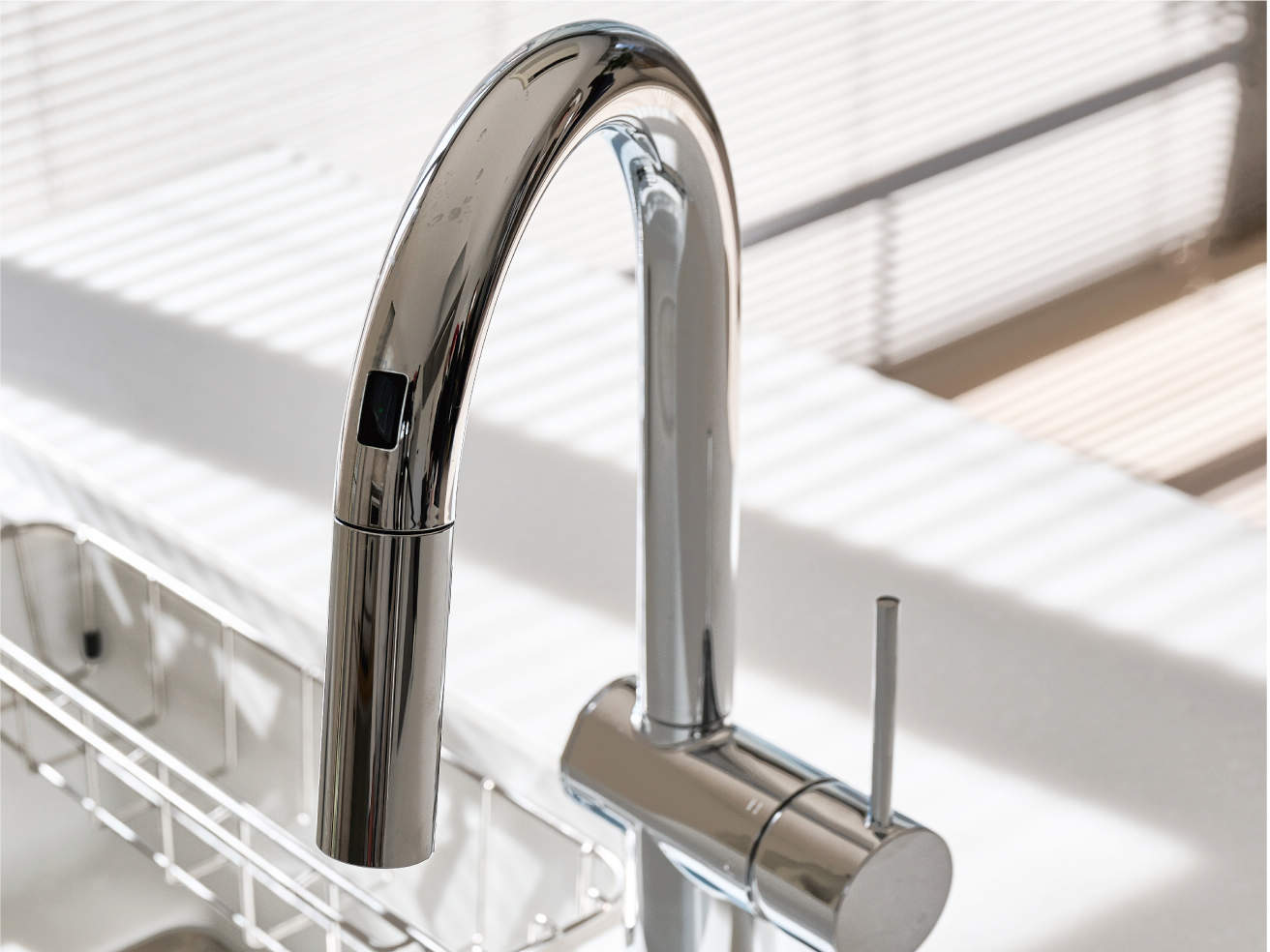 料理が好きでおかずをたくさん作るので、手をかざすだけで水が出るフロントセンサー水栓も便利ですね。
