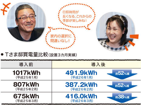 一覧に戻る毎月の買電量が約1/2に!電気代が高い時間帯も、蓄電池は頼りになります!
