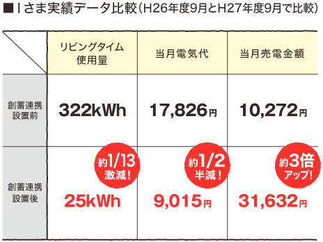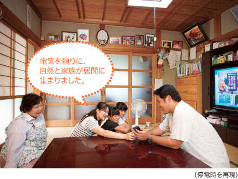 この夏の台風では、至る所で断線が起き、3日間停電の地区もありました。現実に起こった非常事態の中でIさまのように照明や冷蔵庫等が使えた!と安堵の声を頂戴でき、創蓄連携の安心感が役立ち良かったと感じています。