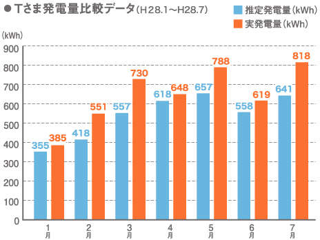 実際の発電量を見せてもらったのが決め手になりました。実際、わが家でも発電量はシミュレーションより上です。太陽光発電に全く無関心だった妻も「パナソニックでOKだったね!」と喜んでくれています。