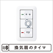 換気扇スイッチ 換気扇のタイマ設定で、設定した時間だけ換気扇を運転し、自動で停止。 消し忘れ防止で電気代節約。