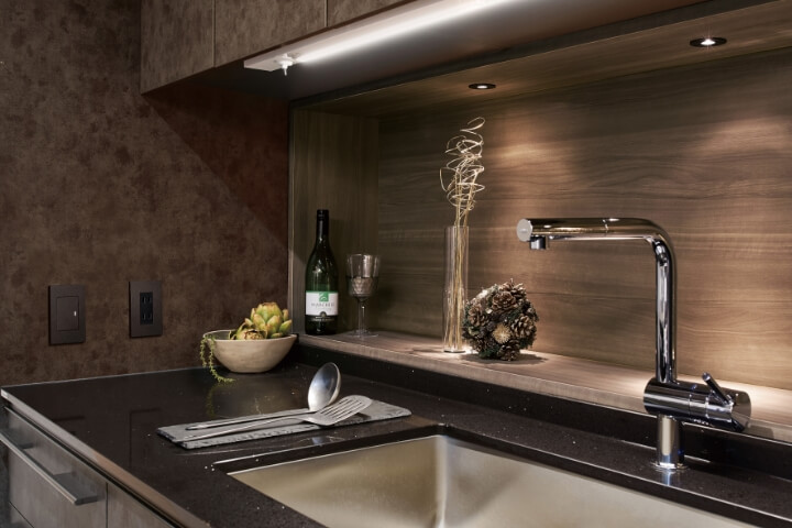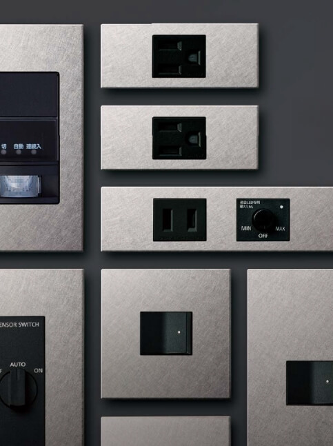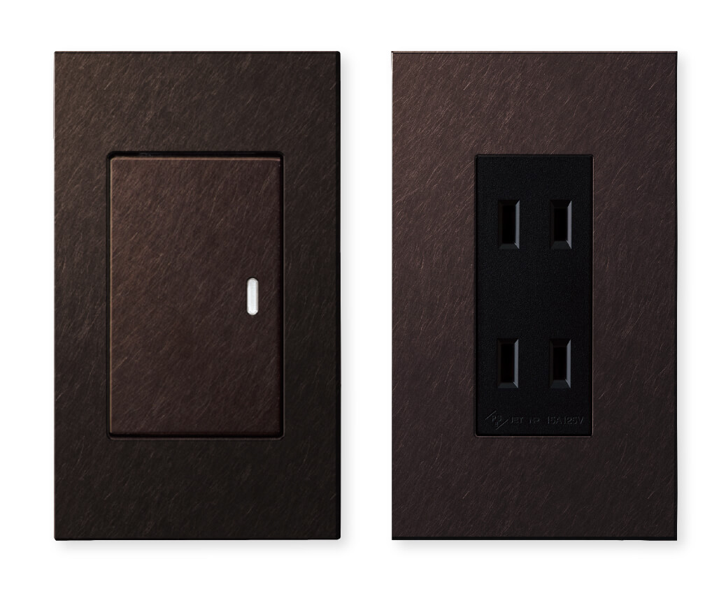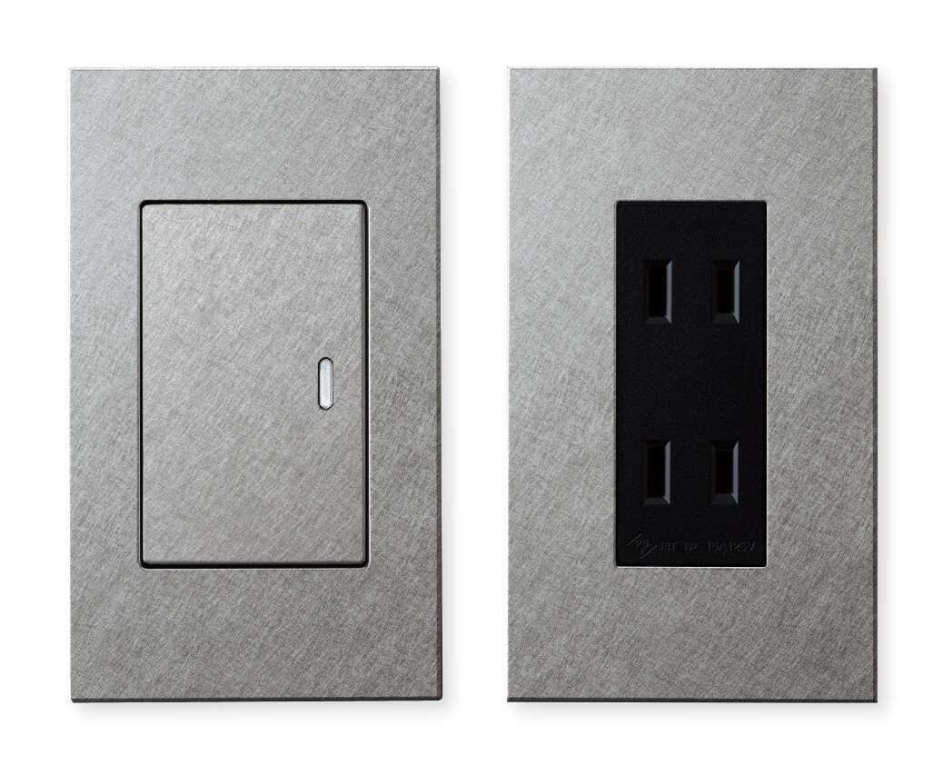 金属表面をランダムに研磨することで、味わい深い格別な質感を演出。唯一無二の存在感を放つ材としての配線器具「EXTRA」シリーズ。
